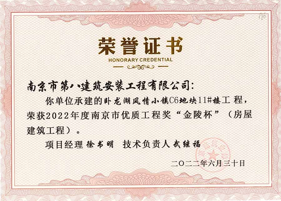 我公司承建的13個(gè)項(xiàng)目榮獲2022年優(yōu)質(zhì)工程“金陵杯”獎(jiǎng)